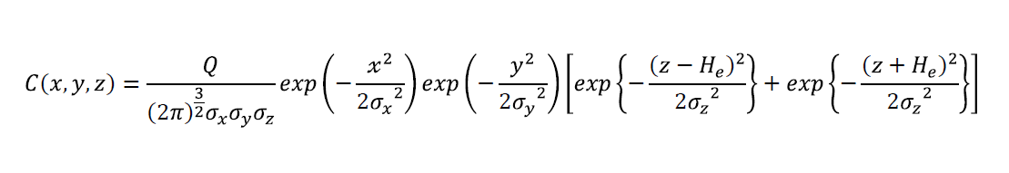 σx、σy、σz : 水平方向x、y、高さ方向zの拡散幅(m)