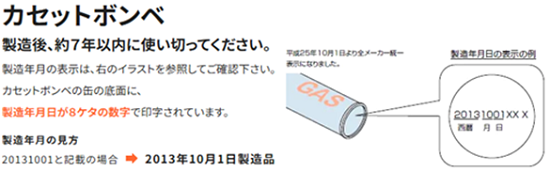 ※3 カセットボンベの使用期限は、ガスボンベの缶の裏面に印字されています。
