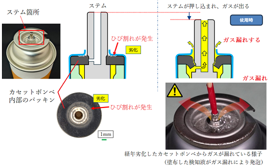 カセットボンベ「3.経年劣化によるガス漏れ」