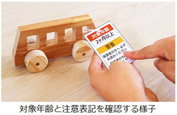 おもちゃはこどもの成長に欠かせないアイテムですが、購入前や使用前に対象の月齢や年齢を確認し、こどもの成長段階に合った製品を与えることが大切です。お下がりのおもちゃをいただく際も、必ず対象年齢を確認しましょう。また、「保護者のもとで遊ばせてください。」、「可動部の隙間に指を入れないよう注意する。」等の使用上の注意表記を確認した上で、安全な環境で遊ばせましょう。
