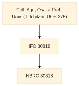 来歴 | IFO 30818 <- Coll. Agr., Osaka Pref. Univ. (T. Ichitani, UOP 275) |