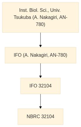 来歴 | IFO 32104 <- IFO (A. Nakagiri, AN-780) <- Inst. Biol. Sci., Univ. Tsukuba (A. Nakagiri, AN-780) |