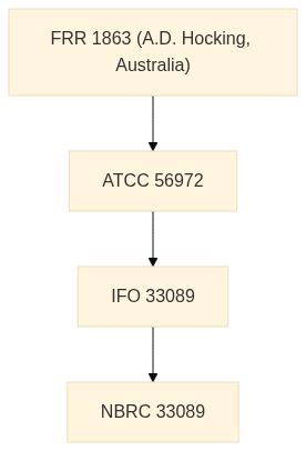 来歴 | IFO 33089 <- ATCC 56972 <- FRR 1863 (A.D. Hocking, Australia) |