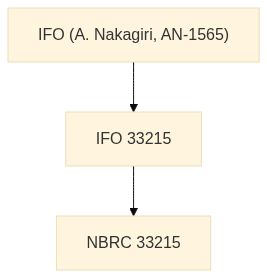 他機関での菌株情報 | IFO 33215 <- IFO (A. Nakagiri, AN-1565) |