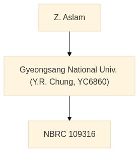 | 来歴 | Gyeongsang National Univ. (Y.R. Chung, YC6860) <- Z. Aslam |