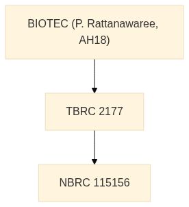 | 来歴 | TBRC 2177 <- BIOTEC (P. Rattanawaree, AH18) |