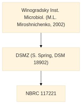 | 来歴 | DSMZ (S. Spring, DSM 18902) <- Winogradsky Inst. Microbiol. (M.L. Miroshnichenko, 2002) |